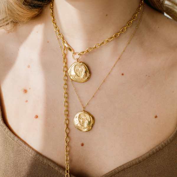 Collana regolabile con catena a maglia larga e moneta grande